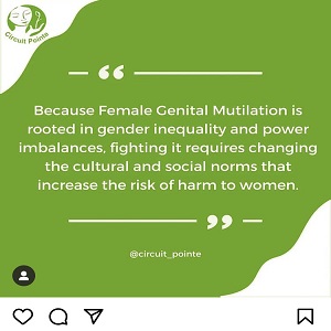 Today, community-level declarations against the practice have been successfully achieved in Nigeria through collaboration with stakeholders and influencers in local communities. The work of Circuit Pointe as contained in this report highlights its multi-pronged approach to educating, advocating and supporting girls, women and communities affected by the degrading practice which aims for social acceptance rather than any overlying health or other valid reason. Hence, the need to involve community stakeholders in an effort to curb the human rights abuses of girls through FGM.....